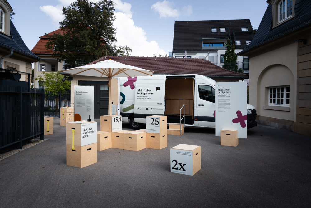 Das begehbare Ausstellungsfahrzeug ist mit einer Medienstation ausgestattet und bietet eine interaktive Ausstellung im Baukastensystem. Für den Außenbereich ist ein Sonnenschutz zur partiellen Beschattung vorhanden.